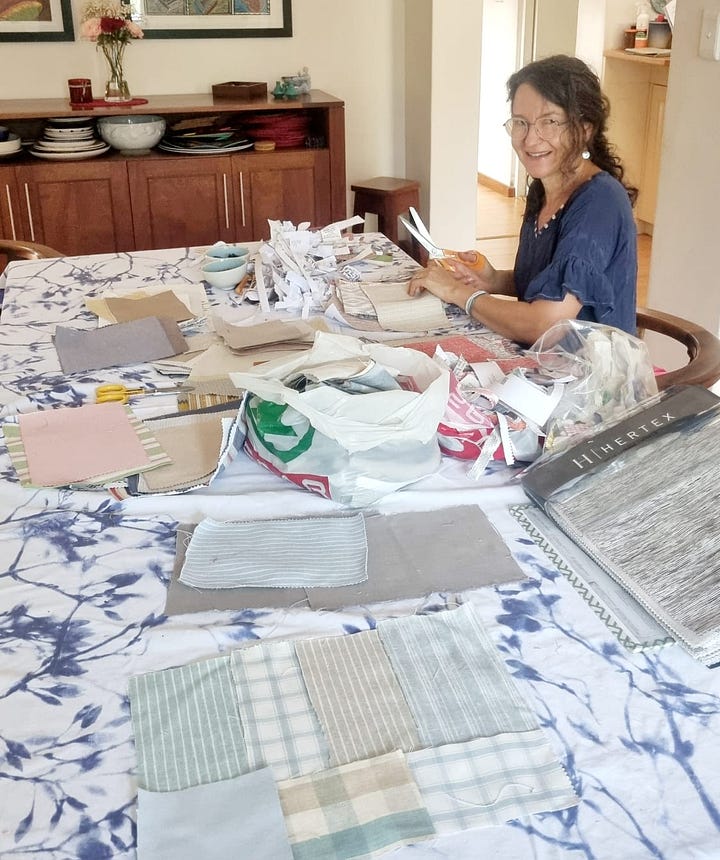 Steph and I are making floor mats for children to sit on in an art room. An art room should encourage relaxation and creativity, a sense of ease. We’re using fabric samples donated by a friend. At this point, we’re cutting out the samples and arranging them, prepping for a process involving a hot iron and an industrial sewing machine. Ultimately, we’ll have a patchwork mat. Stay tuned for updates.
